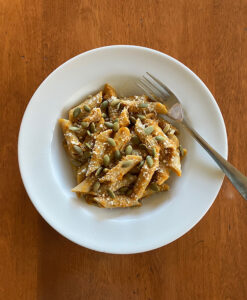 6. Toss the pumpkin sauce with the pasta. (If the sauce is too thick for your liking, add more broth before you mix with pasta.)